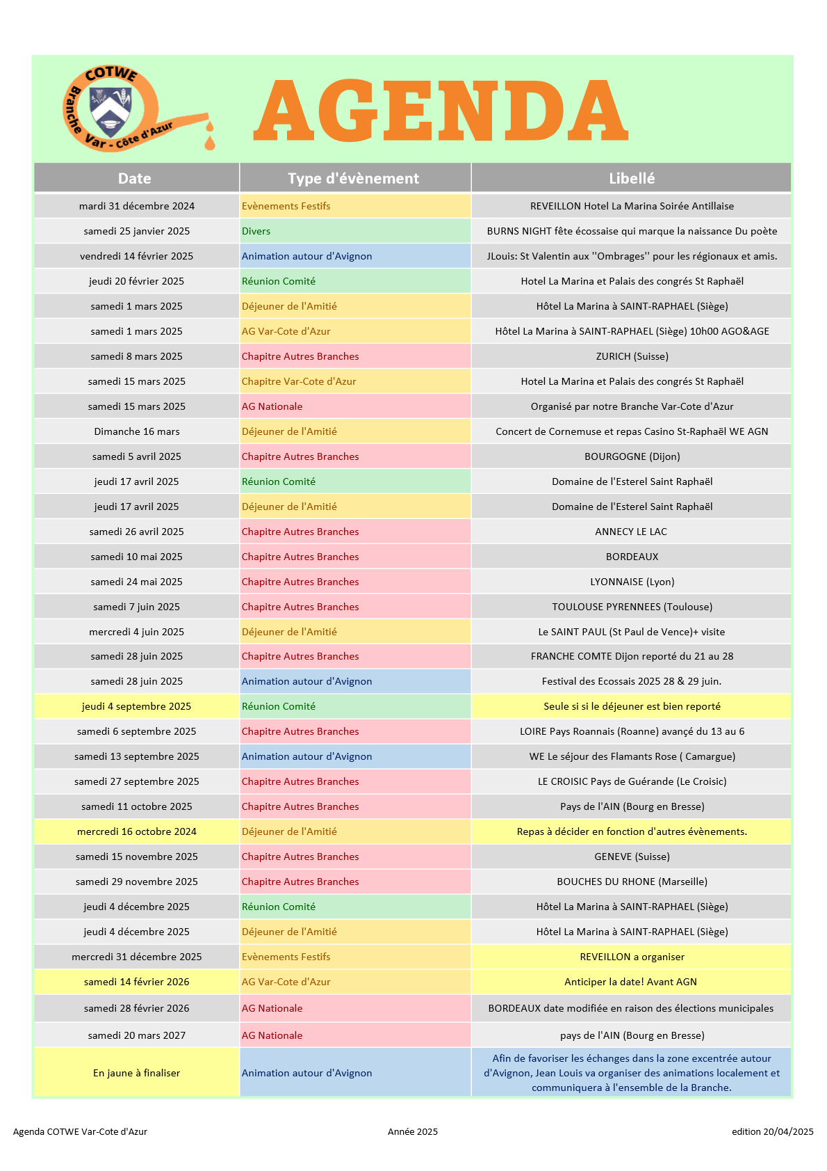 Agenda année 2025 et AGN 26-27 version 20 avril 25